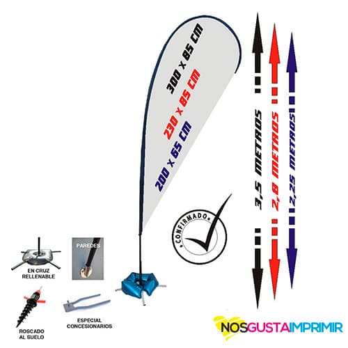 Bandera gota 2,45 m con imagen corporativa Tecnocasa para agentes. Sublimación a todo color, mástil y base incluidos.