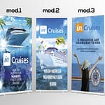 Photocall popup textil 219×219 cm con imagen Incruises oficial. Poliéster sublimación, velcro y maleta. Para ferias y eventos.