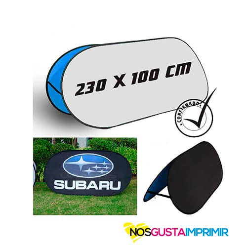 Expositor popup golf de 230×100 cm impreso en poliéster por sublimación. Diseño de doble cara con imagen viva en ambos lados, perfecto para campañas de exterior en parques, mercados y eventos al aire libre.