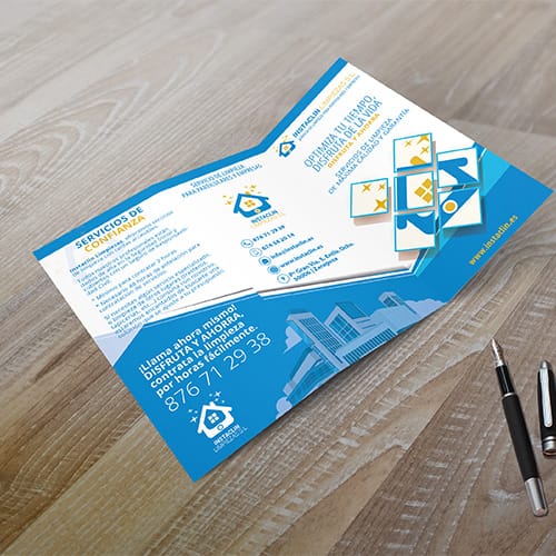 5.000 trípticos o dípticos en couché 135 grms a dos caras. Para presentar tu empresa, servicios y catálogo. Diseño incluido.